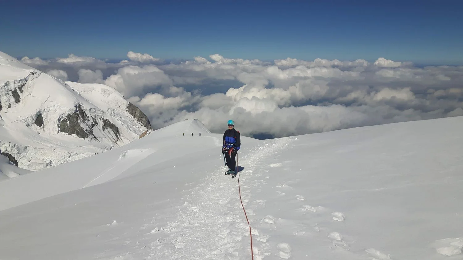 The final climb to the summit of Mont Blanc from the Col du Maudit