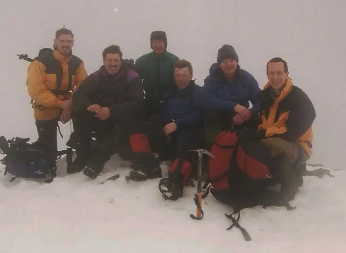 Mountaineering in Glencoe, 1996. Michael is third from the right (yes, really)